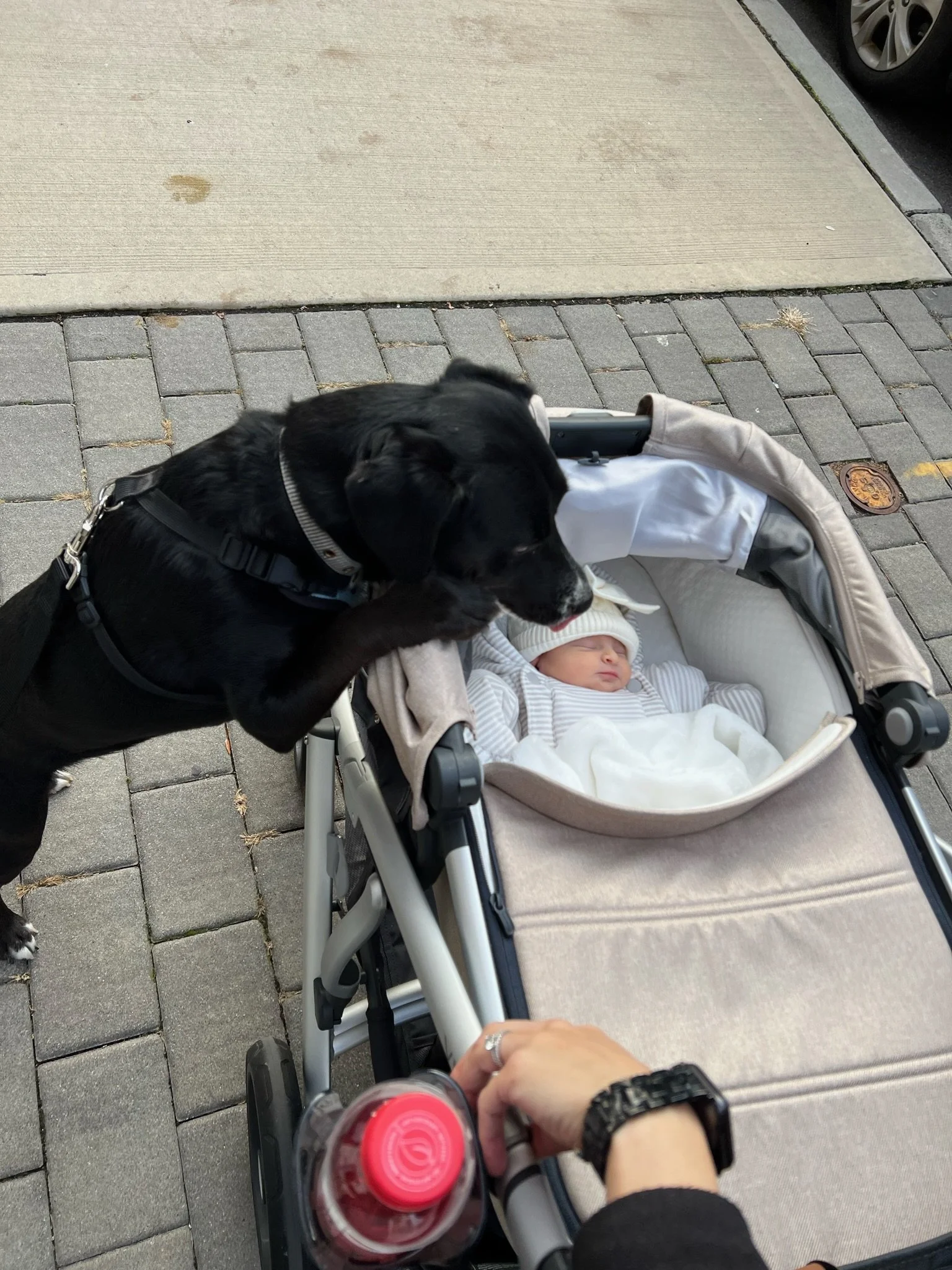 Everyone has also been asking me about how Barkley (our 4 year old mutt) has been handling all of this, and the answer is - really well. He is such a happy go lucky dog, so I do not sense any sort of jealousy - in fact the exact opposite. He shows genuine concern whenever Julia cries. He likes to know where she is at all times, often making the rounds between the couch, her swing and her crib until he locates her. Something that has always fascinated me, is how well dogs sense the fragility of a new born; Barkley is typically a bull in a china shop, but around Julia, he is incredibly delicate.