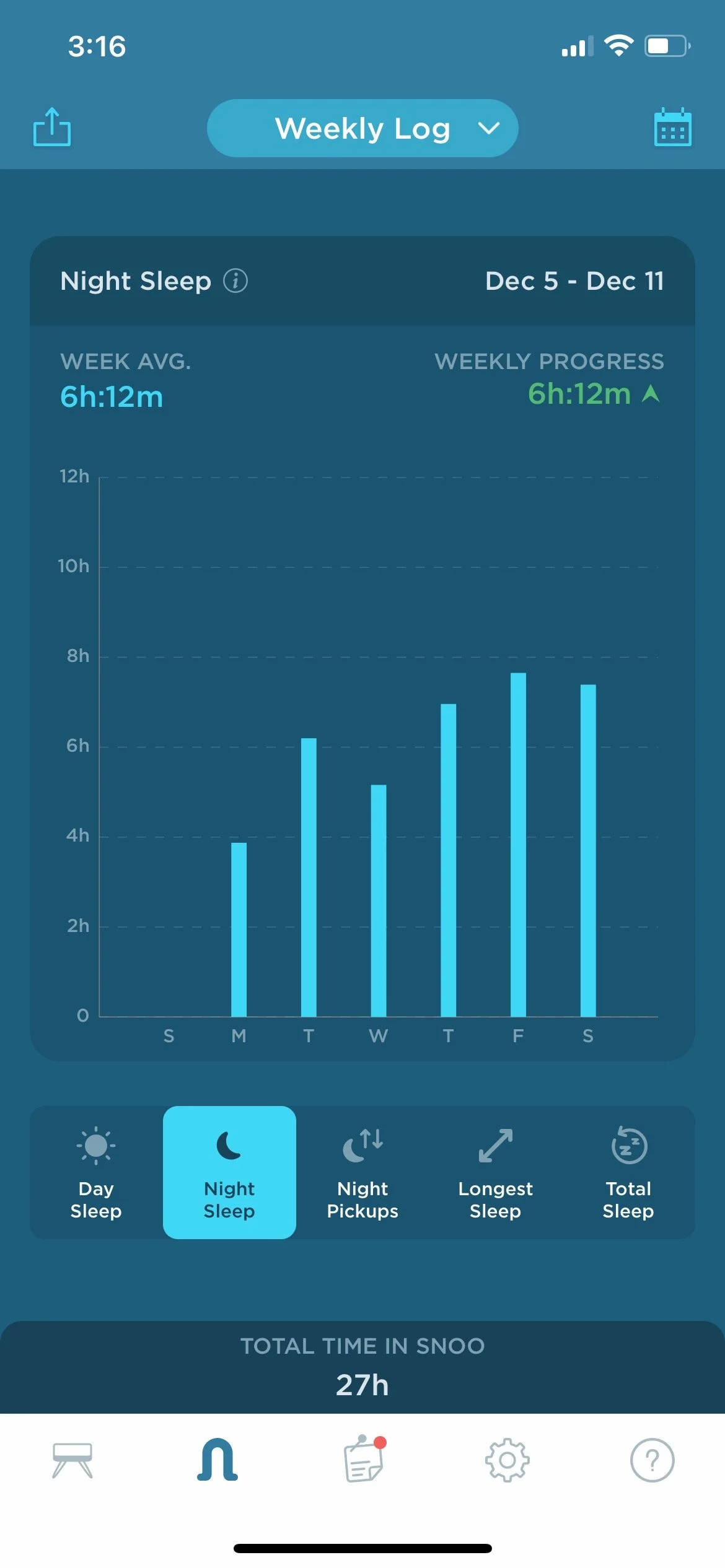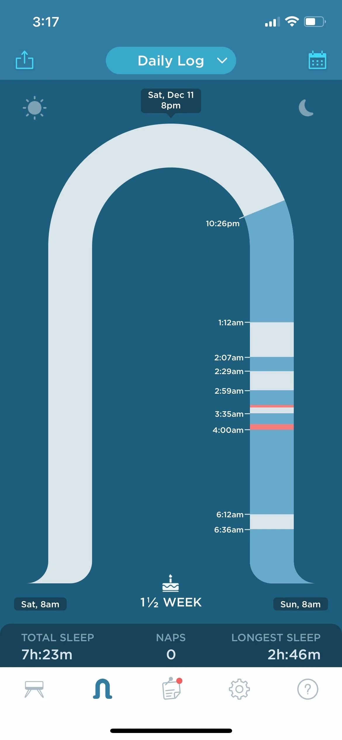Julia’s sleep log for this past Saturday, via the SNOO app.
