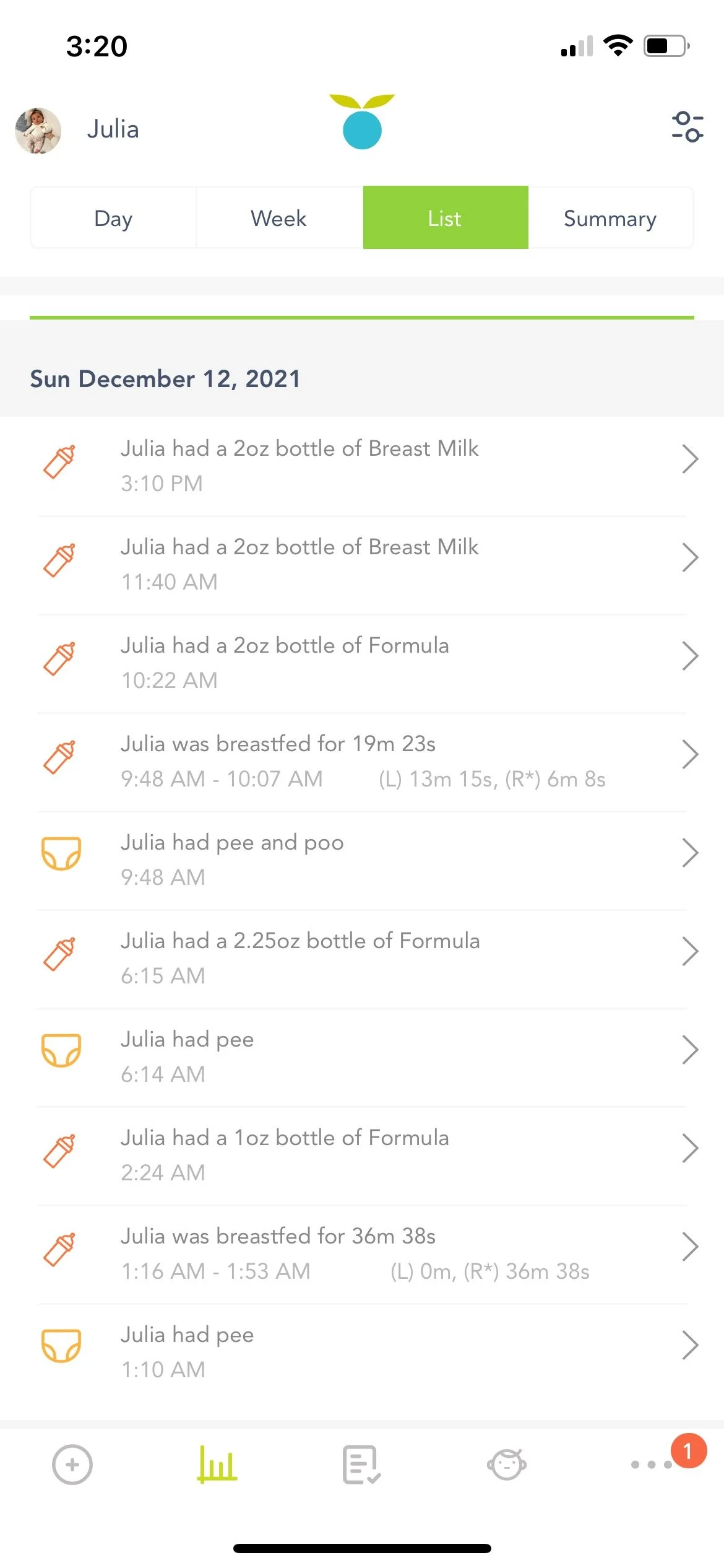 “Julia had pee. 1:10 AM”. Glad we documented that.