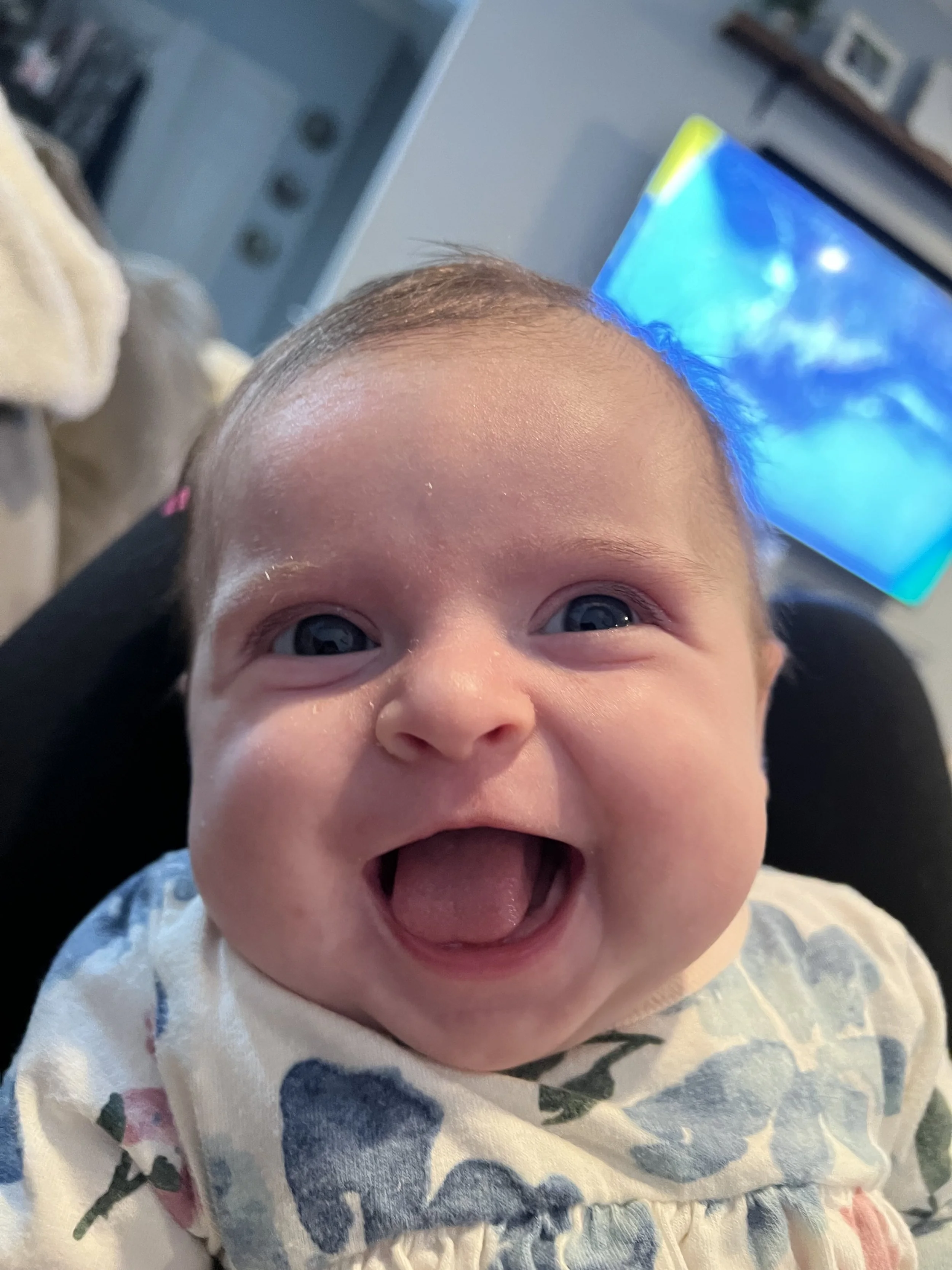 Once again conveniently, Julia decides to wake up at this precise moment and decide she is hungry. Extremely hungry, hangry once might even say. Very quickly, soft whimpers escalate into full blown screaming and I’m at least 5 minutes from being able to feed her. So I drop everything, throw a bottle in the warmer and try and console her, but that only seems to make her more mad. If Loral would have walked through the door at that moment, she would have seen me with an absolutely hysterical Julia in one arm, frantically trying to get a bottle ready with my free hand, while Barkley (our dog) eats a banana peel from the pile of trash sitting in the middle of the living room. I might have had custody revoked.