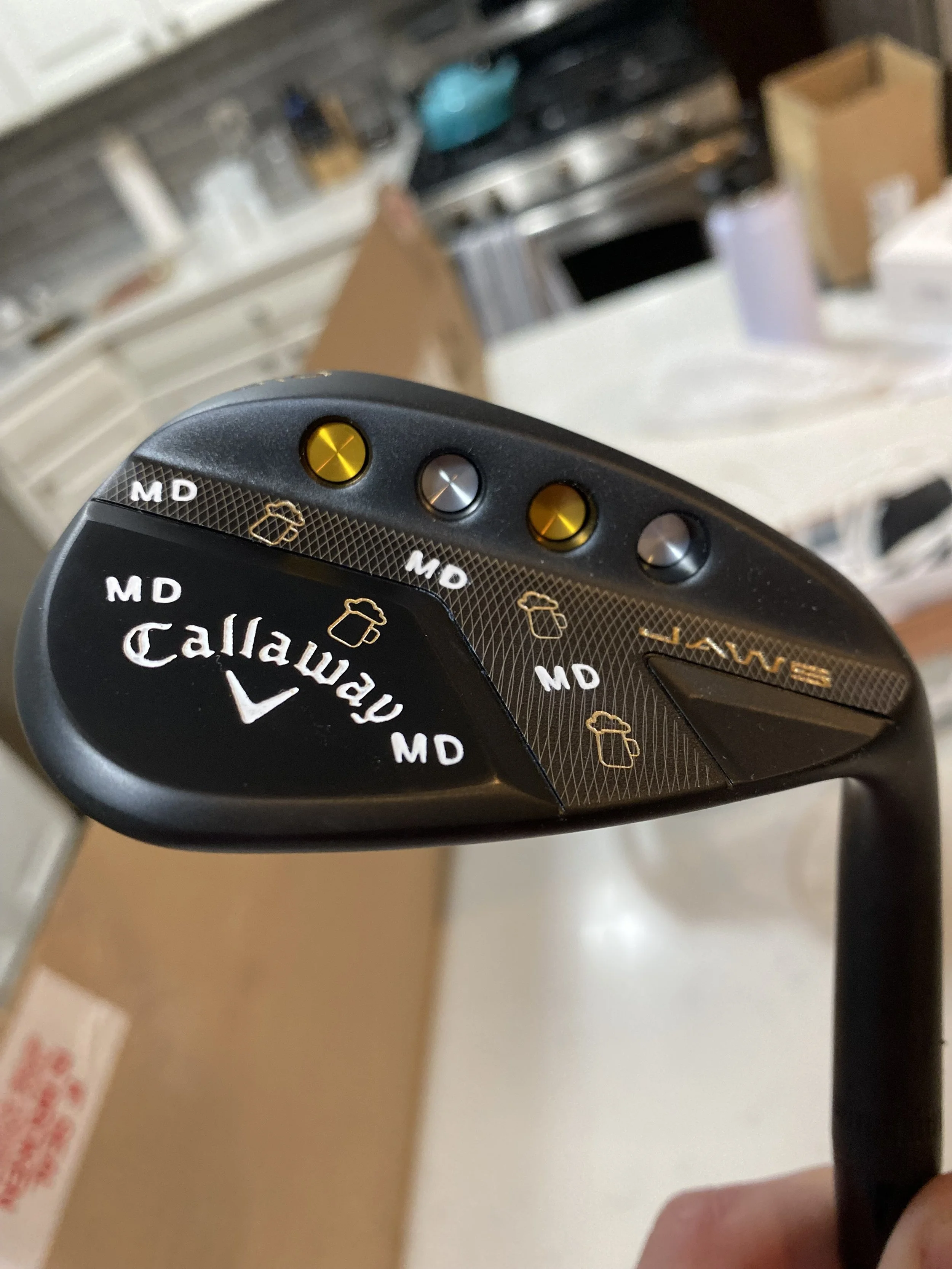Callaway Jaws Lob Wedge - full toe grind, 60 degree. I heard something the other day on golf channel, that Jon Rahm swaps in brand new wedges ever week, in order to have the sharpest possible grooves. Now that may be a little excessive, but I do think I could benefit from replacing my wedges more frequently, especially being someone who needs all the help he can get generating spin. And since I had a Callaway gift card, I pulled the trigger on this wedge (and sprang for the custom stamping). The face of this club is purposely unfinished, so that it rusts over time and creates more friction (and ultimately more spin). I haven’t had a chance to hit it much yet, but it has performed well with foam balls off the carpet…