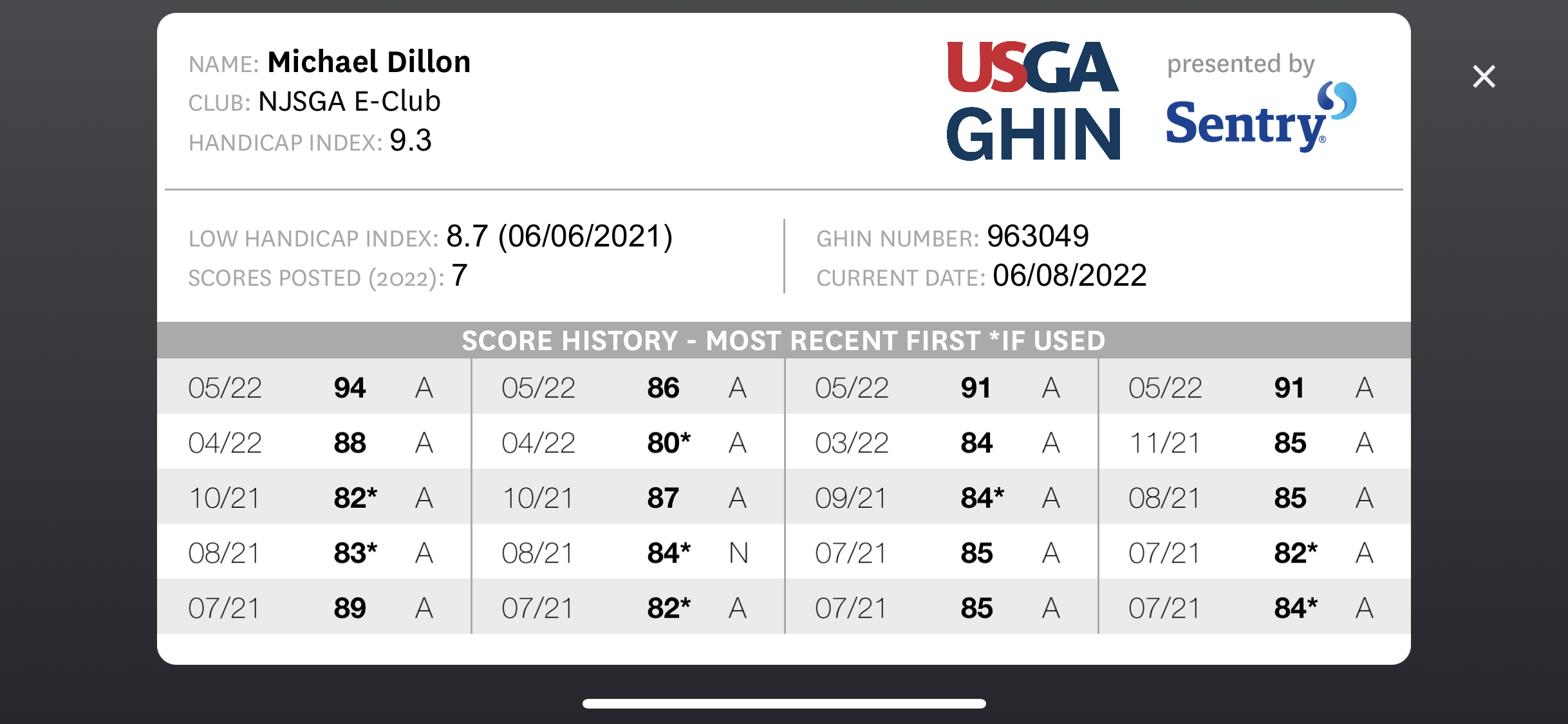 Handicap Update: