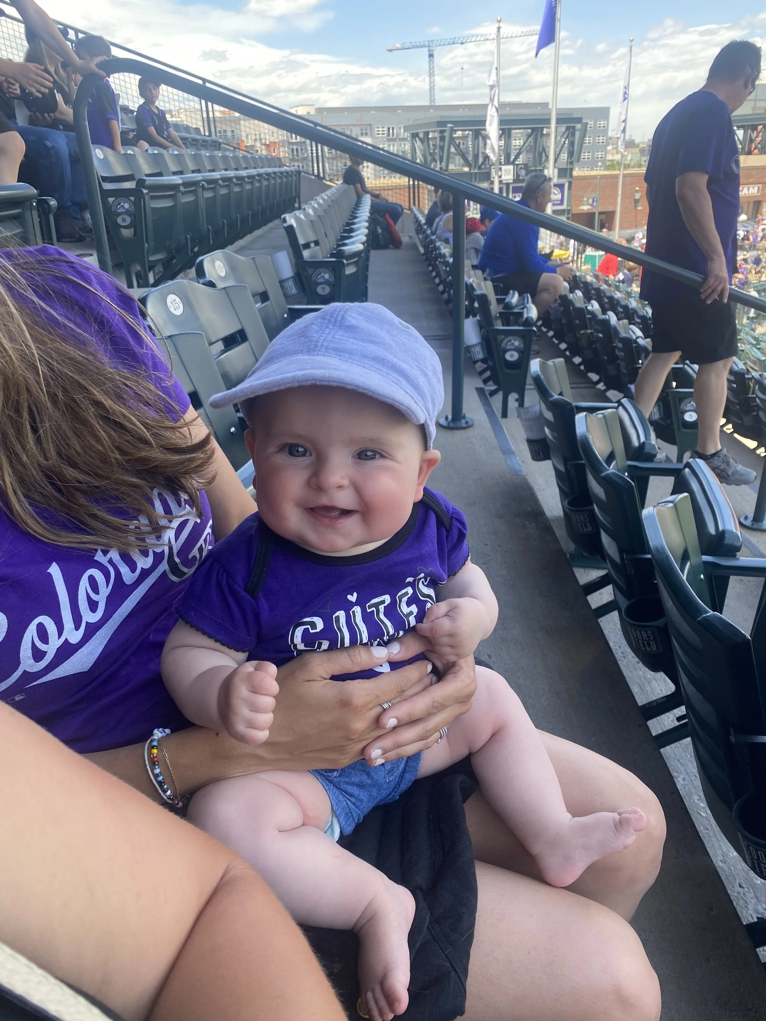 Last week, we flew out to Colorado to visit my sister Liz and her boyfriend Craig for a long weekend. Our departure trip was super smooth - our flight left on time, our checked bags arrived as expected, Craig was able to pick us up and help get the car seat in his car with relative ease. Our travel confidence was increasing. We had a great time over the next few days - hiked with Liz’s Weiner dog, spent the afternoons by the pool, brought Julia to her first baseball game at Coors Field. By Sunday night, we were pretty tired, and decided to take it easy, and rest up for the return trip on Monday.